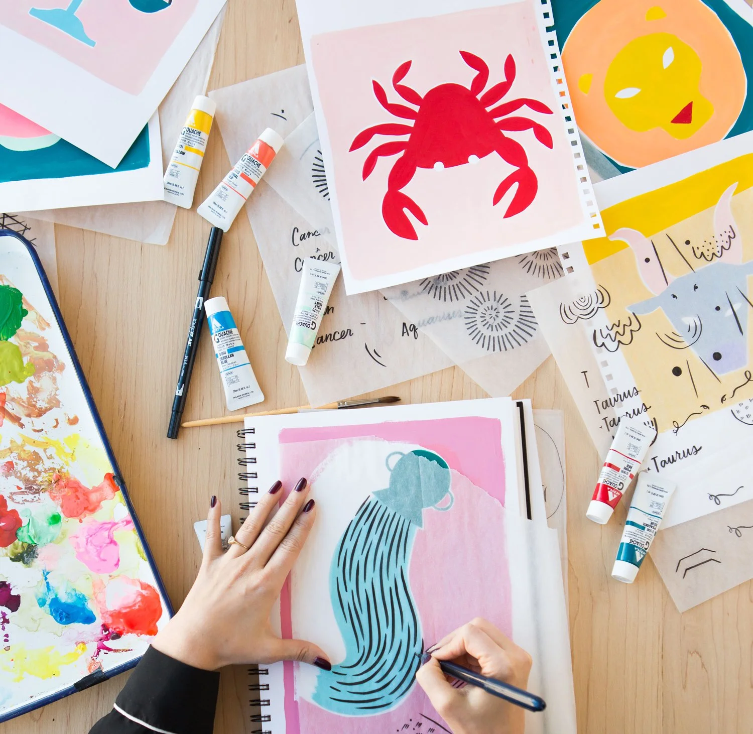 Twelve hand-painted animated GIFs used across email, social media, and Hallmark products, showcasing the playful, colorful character of the Think.Make.Share blog. Buy cards with this art over at Hallmark.com.